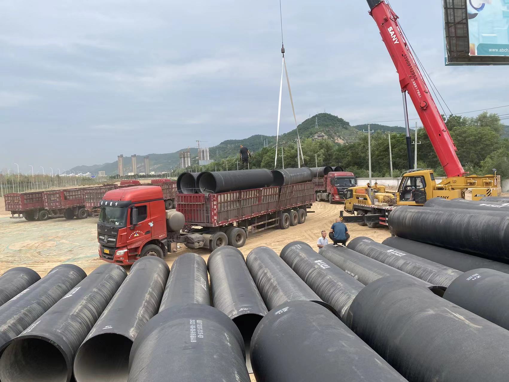 延安黃河引水工程之一的東川水廠擴(kuò)能工程項(xiàng)目永通鑄管材料進(jìn)場(chǎng)